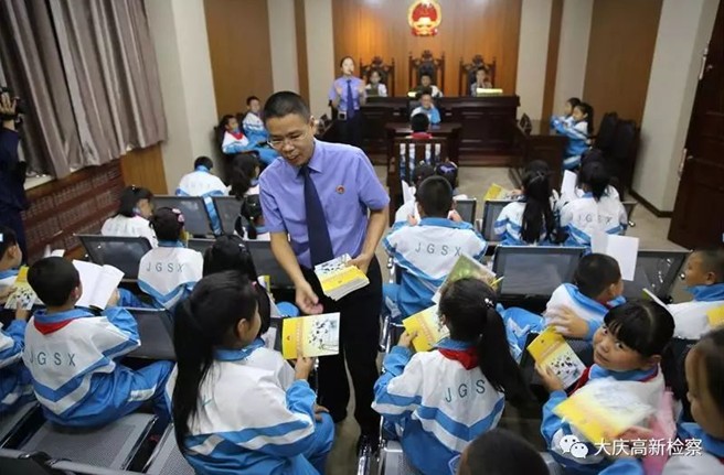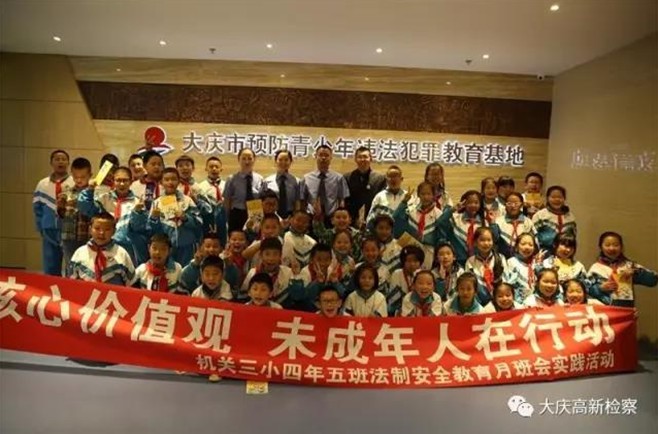 “如何践行社会主义核心价值观,如何保护好自身的安全,遇到伤害又该怎么办……”日前,大庆高新区检察院内预防青少年违法犯罪教育基地迎来了新学期首批小客人。高新区未成年人犯罪审查科检察官为来自大庆市直属机关第三小学的46名师生上了一堂生动的法制课。