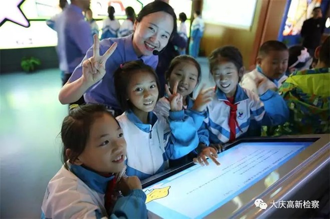 在教育基地,检察官从法的发展篇、法律法规篇、违法犯罪篇、案例警示篇、犯罪危害篇等七个部分,运用声、光、电相结合的方式,生动直观的向前来参观学习的小学生展示了犯罪预防有关法律知识。